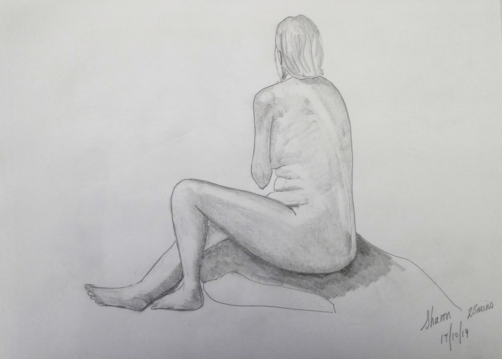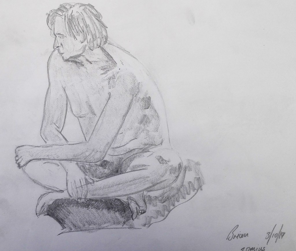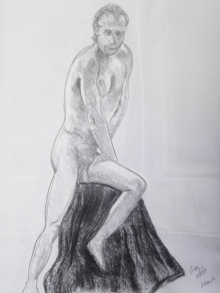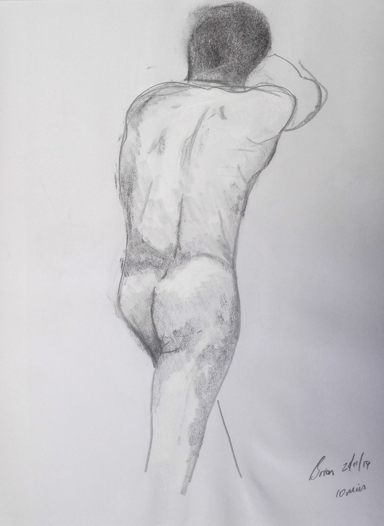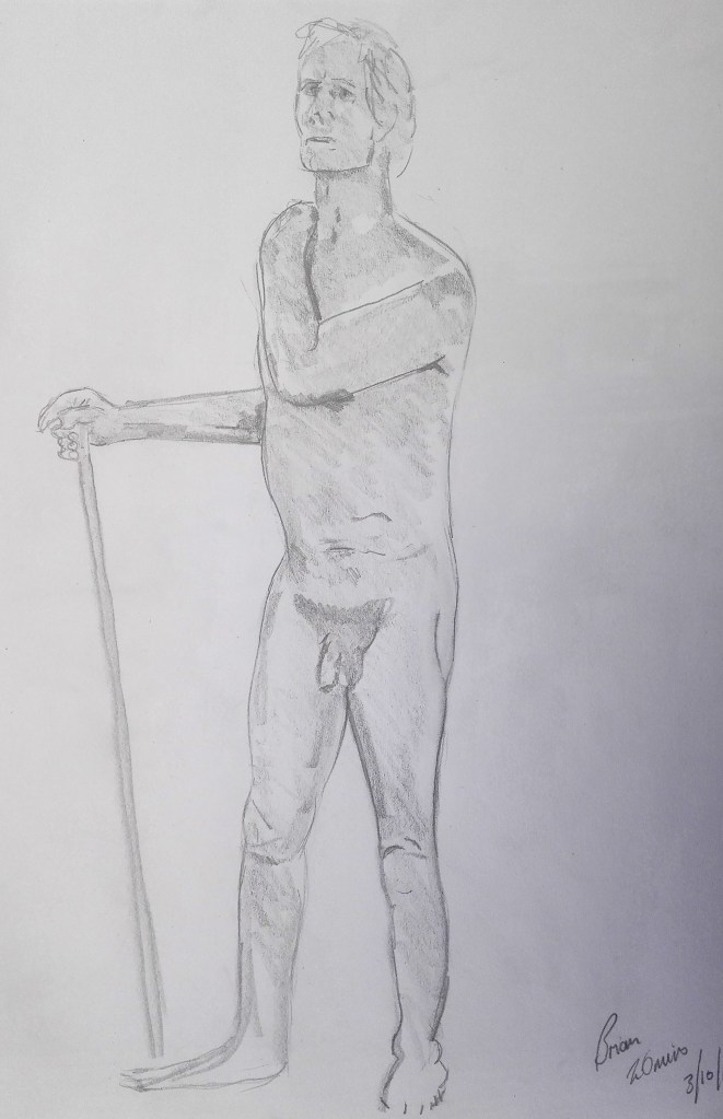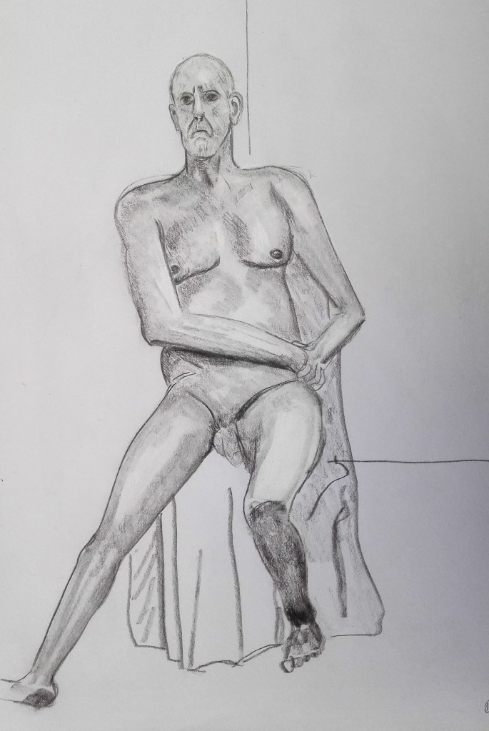I continue to attend a Life Drawing Group in Ely. We meet every week for three eight weeks sessions each year. The sessions are from 6:30pm to 9pm. The usual format is for the models to pose for three 5 minutes poses, two 20-25 minutes poses and one 45 minute pose. This sometimes changes depending upon requests within the group. Currently we have a roster of four models, Brian, Dexter, Sharon & Eva and they will normally have two sessions each over the eight week period. Since I started with the group during Drawing 1, which I completed in 2017, I have posted some of the better drawings in my blogs. I will do the same again during this course. The first set of drawings were from the Autumn 2019 term which was after I had sent my work and completed my blog for ‘Concepts in practice’