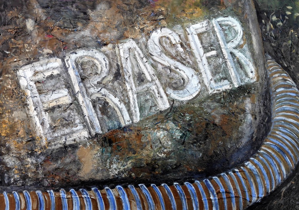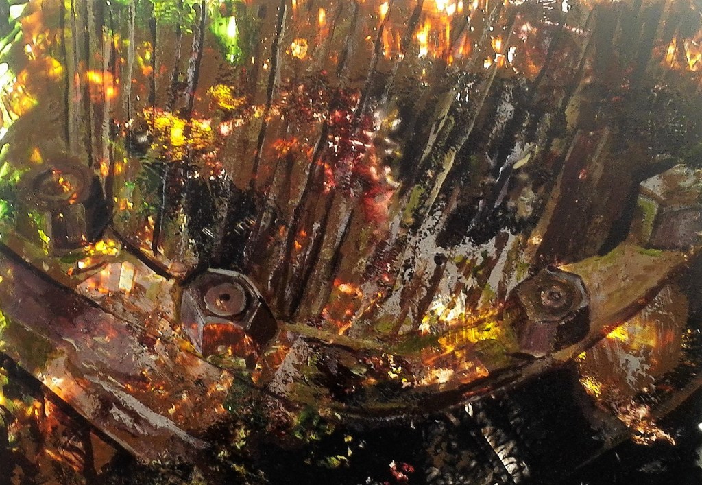 1, Eraser, Oils and acrylic on acetate, 21 x 29 cms (a study of part of an abandoned piece of farm machinery)