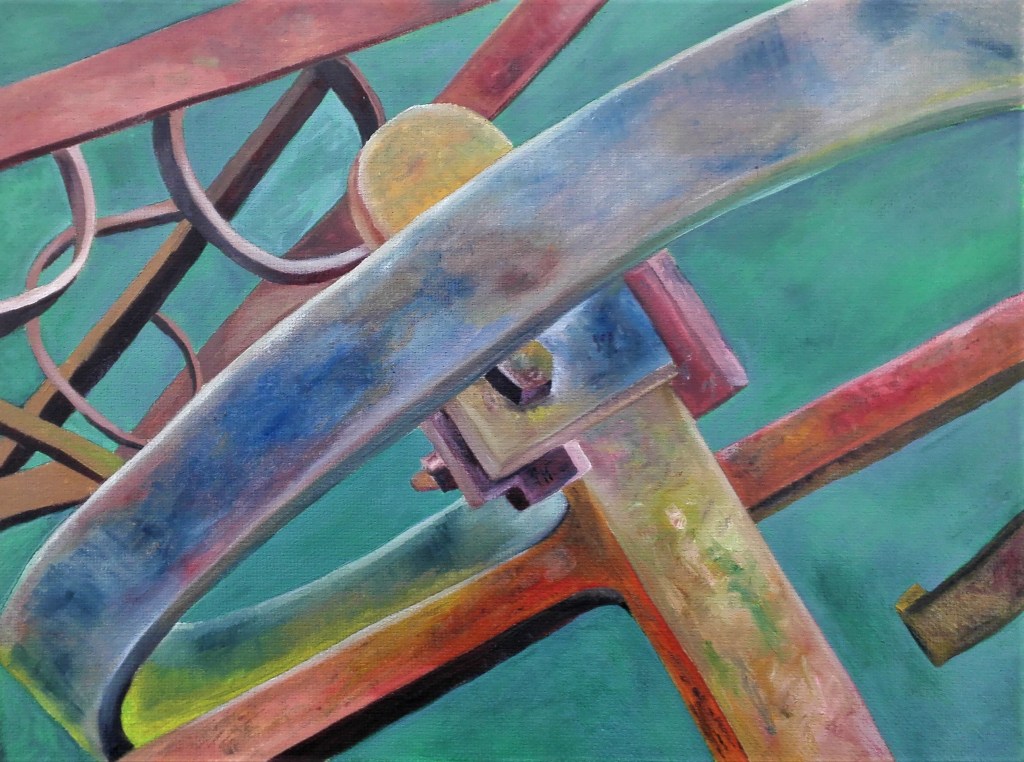 3, Old Plough, Aqua oils on linen board, 30 x 40 cms (a study of a section from an abandoned plough)
