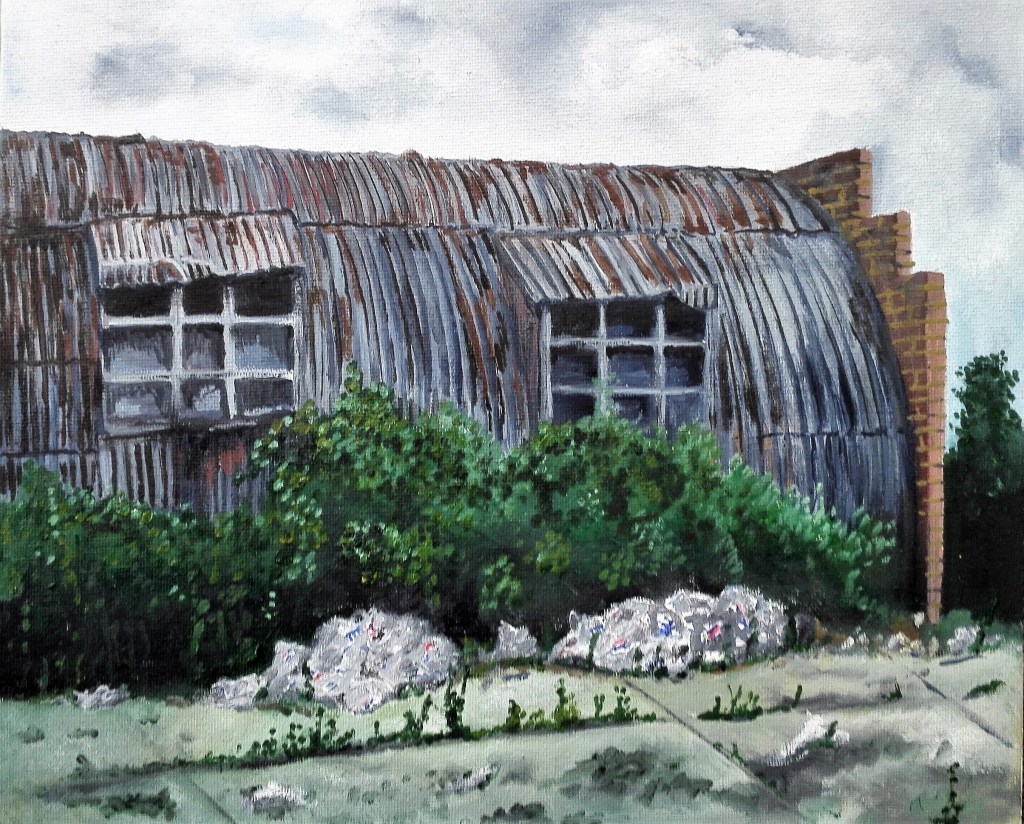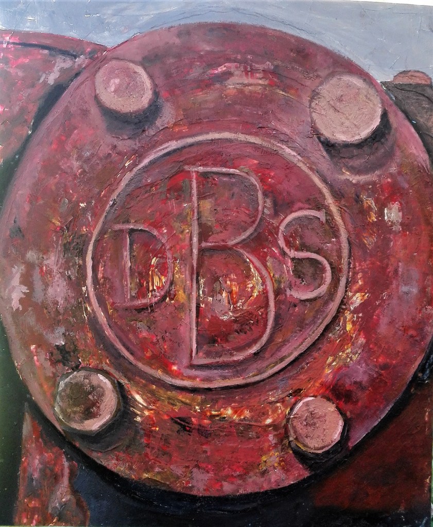 4, Radicon, Aqua oils on linen board, 30 x 40 cms (a study of part of a pump system in the Fens)