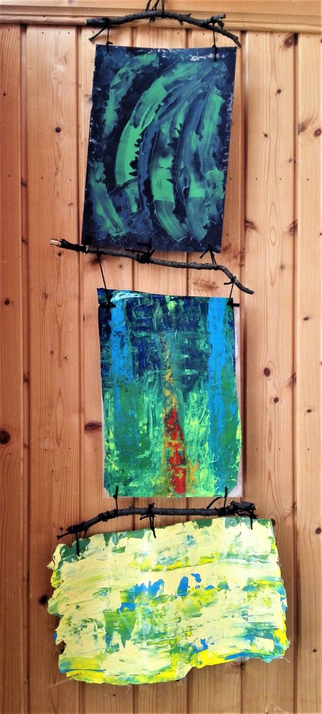 These materials have been applied to a range of supports including kitchen foil, greaseproof paper, and gift wrap. One that I have found that lends itself to the application of paint is acetate. Its transparent properties can add interest to paintings particularly when displayed back lit. Two examples shown below.