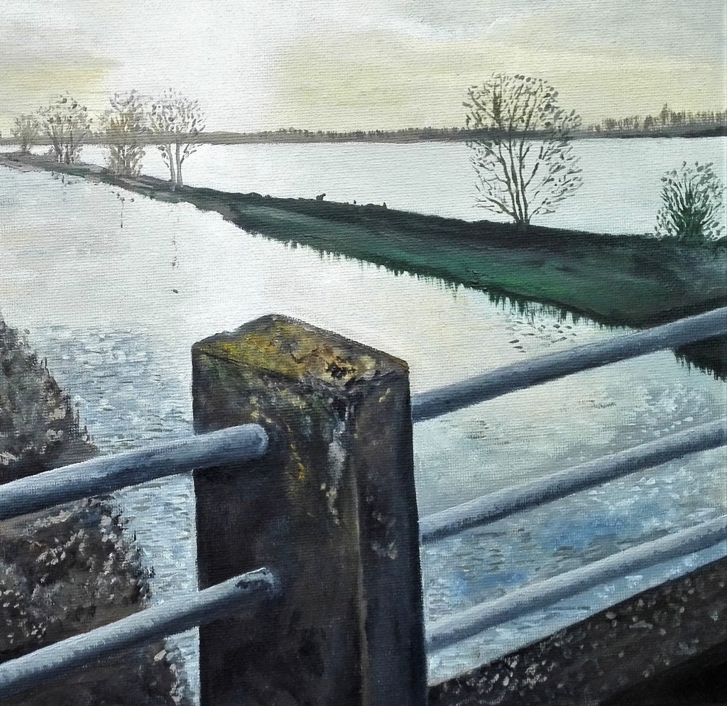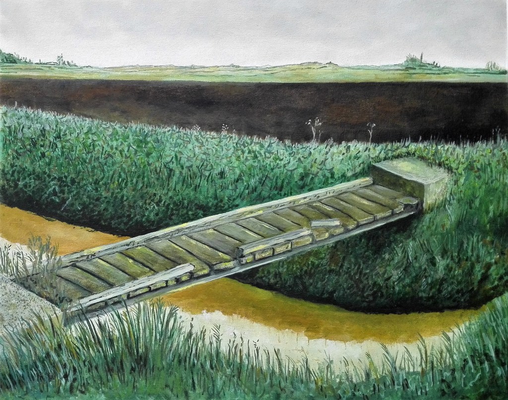 The Parallel Project became the main focus of my painting in which the two focus areas forced me to observe my local Fenland landscape in new ways. I looked to find innovative ways to portray the subjects which didn’t always result in satisfying paintings. This became apparent when editing my project portfolio. Paintings which I felt, to be contenders for the portfolio had poor composition or, in the case of the close ups, lacked visual interest. A couple of examples are the paintings below, the first composition utilises an unusual viewpoint which doesn’t quite work. In the second painting the subject matter has become overwhelmed by the colours and textures of the paint.