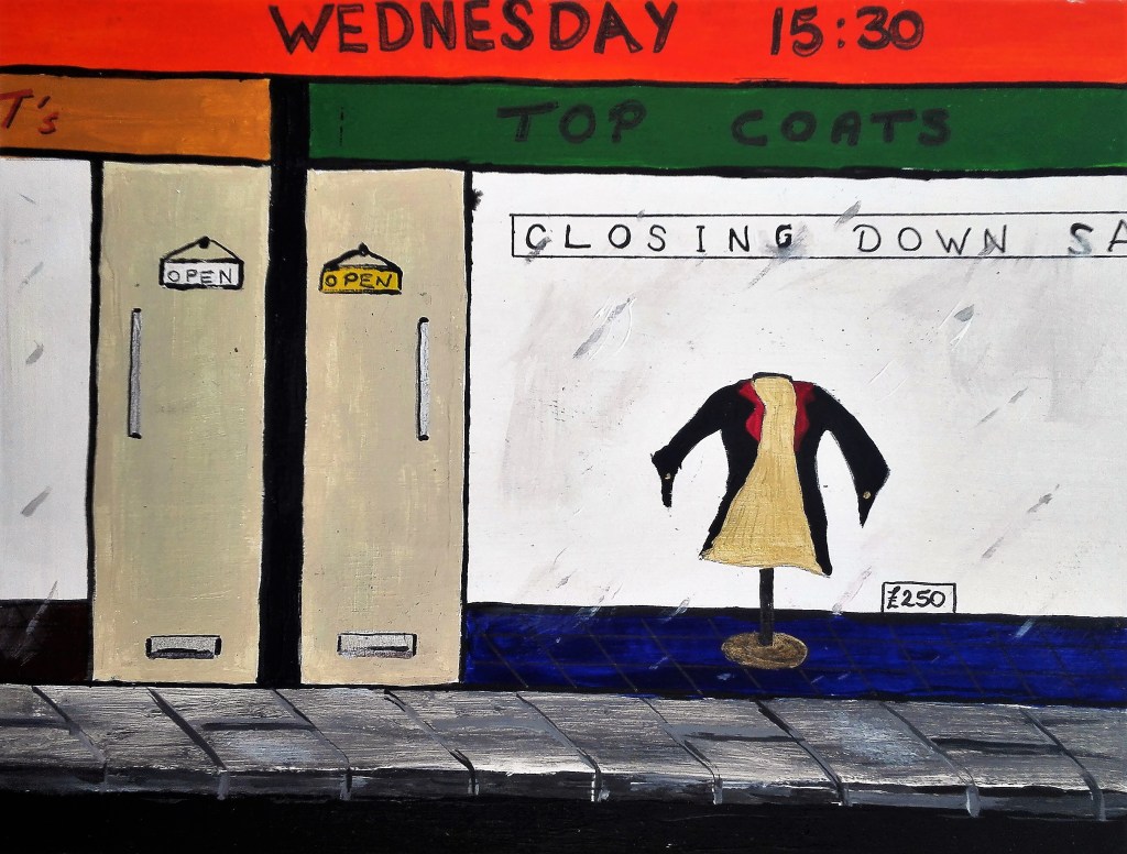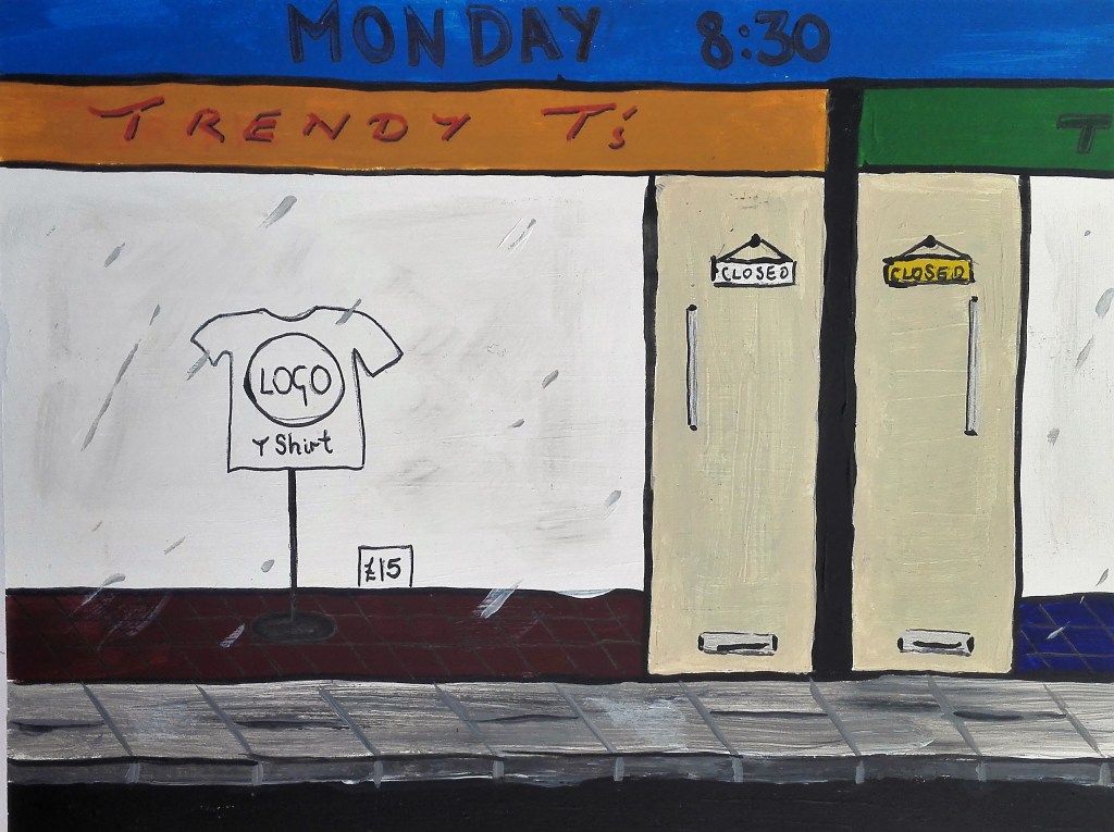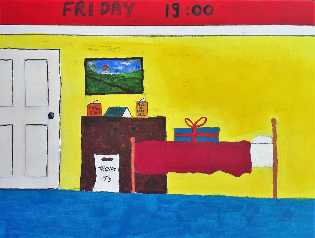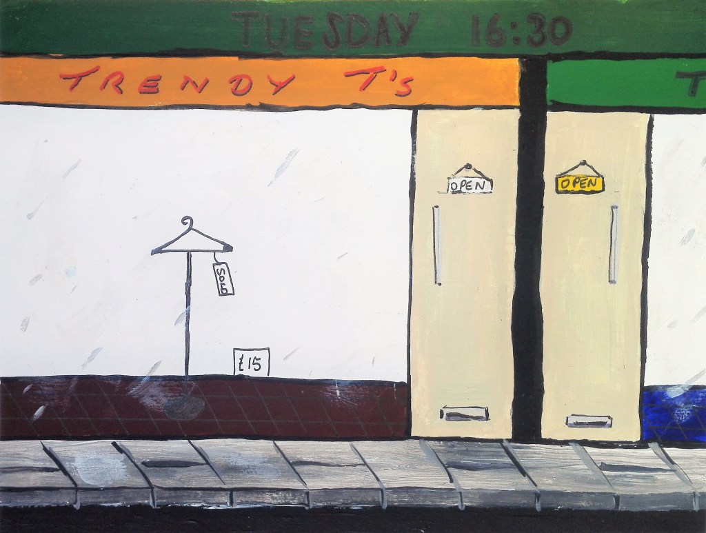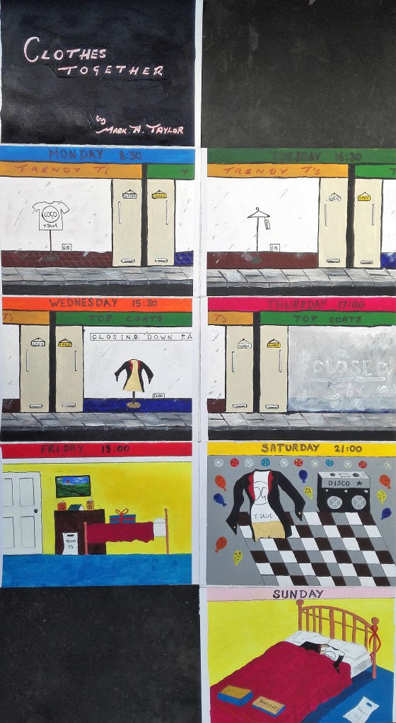 I had been warned that Part Three could be a challenge as it would take me into areas of art which I would not normally venture. However it was also mentioned that I should look to embrace these challenges whilst also looking at ways to respond to them via painting. It is painting that is my primary artistic drive. I feel that in the work that I have completed during Part Three I have managed to marry both the objective of exploring the tasks in an open way and found ways to articulate these tasks with painting. In doing so I have created a body of work in which I have explored a number of different styles which have also encompassed a variety of techniques. This has ranged from near cartoon like, illustrative painting through to more standard pictorial painting, expressionist work and also abstract works. In completing these I have worked in both the studio and outside, ‘en plein air’. I feel comfortable moving amongst these different styles but I do have some minor concerns that my own personal style has not emerged.