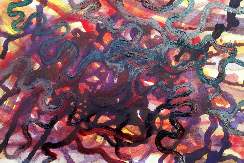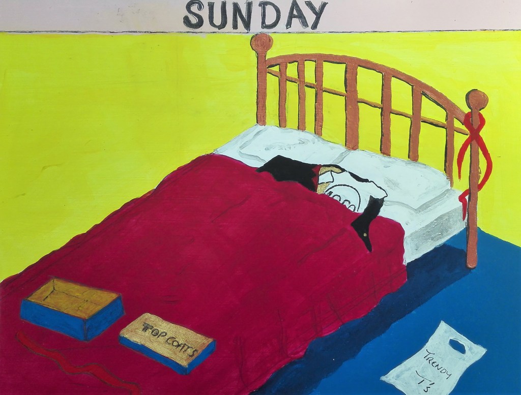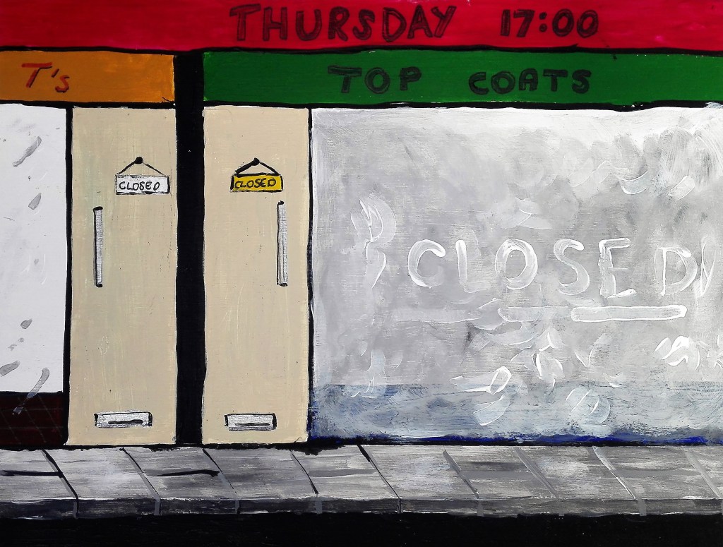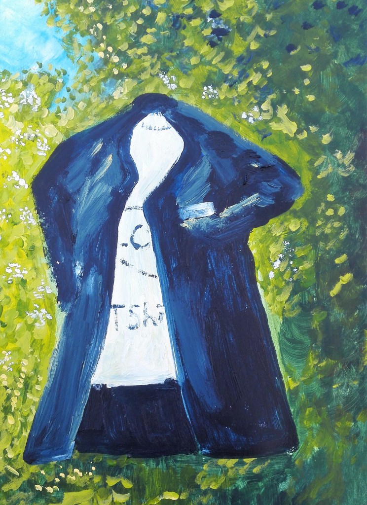 I had been warned that Part Three could be a challenge as it would take me into areas of art which I would not normally venture. However it was also mentioned that I should look to embrace these challenges whilst also looking at ways to respond to them via painting. It is painting that is my primary artistic drive. I feel that in the work that I have completed during Part Three I have managed to marry both the objective of exploring the tasks in an open way and found ways to articulate these tasks with painting. In doing so I have created a body of work in which I have explored a number of different styles which have also encompassed a variety of techniques. This has ranged from near cartoon like, illustrative painting through to more standard pictorial painting, expressionist work and also abstract works. In completing these I have worked in both the studio and outside, ‘en plein air’. I feel comfortable moving amongst these different styles but I do have some minor concerns that my own personal style has not emerged.