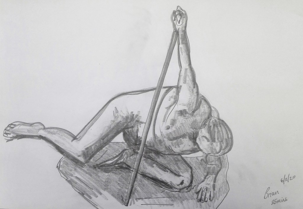 When I look back over my Drawings I do see a gradual improvement. It is slow but us perceptible. At some point probably after I have hopefully completed my degree I will look to get some tuition with regard to Life Drawing as I’m sure that there are techniques that would help me to improve.