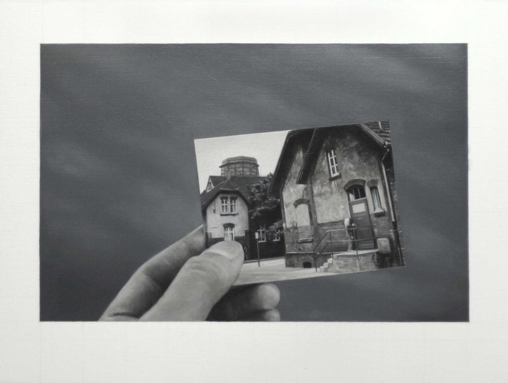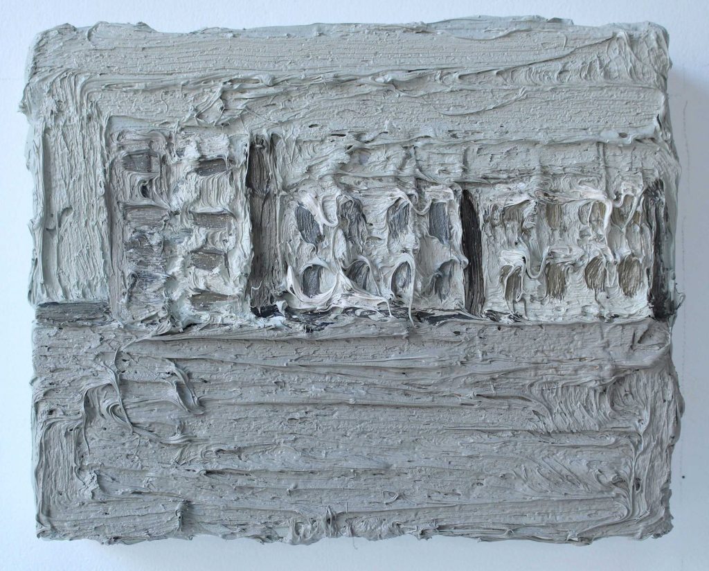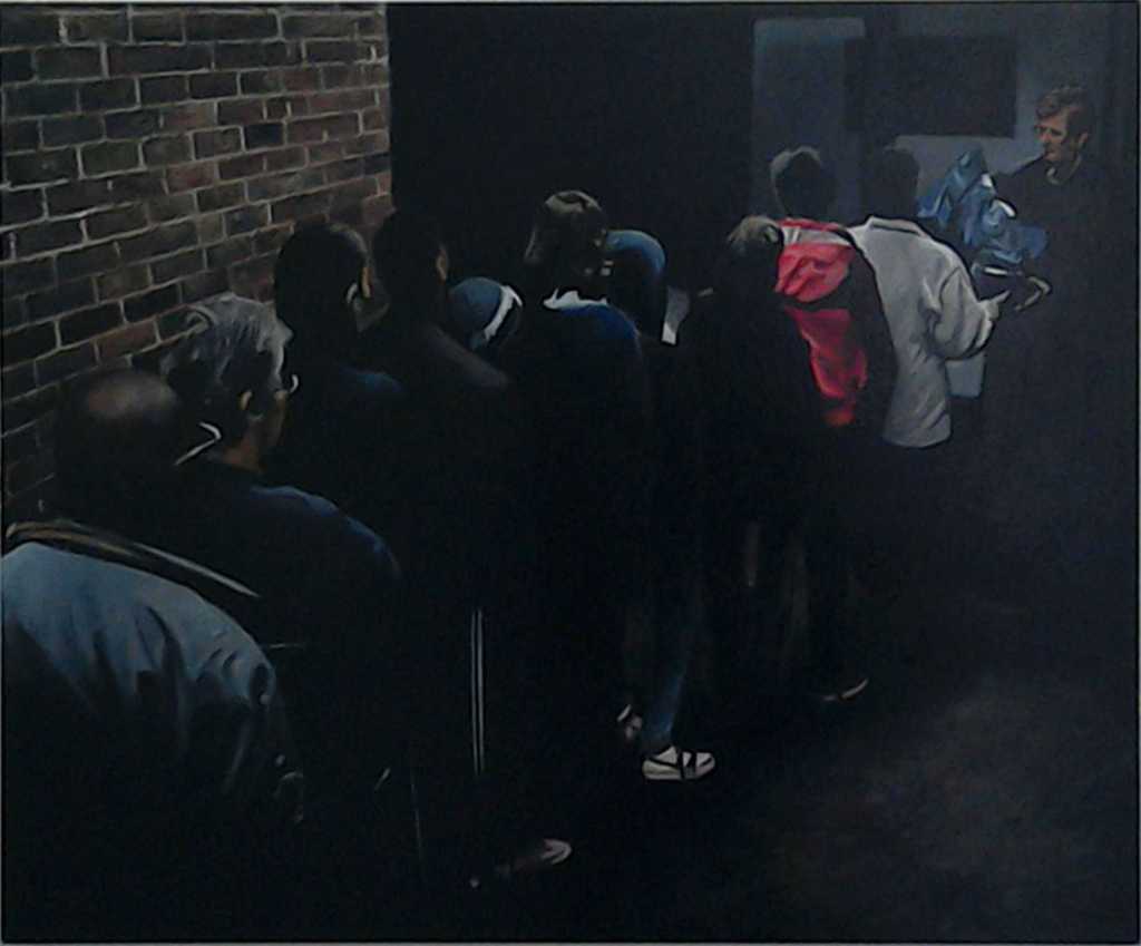 This painting could almost be an advertising photograph for a new housing estate. It is a tour de force in linear perspective coupled with photo-realism but, for me, lacks feeling, it feels cold. The intricate work that has been completed, especially on the scaffolding, has been painstakingly rendered and I suspect took the artist many hours to complete. The title adds an air of intrigue ‘ It Haunts It’ as it raises a question as to what is haunting what? To my mind it is the idealistic, ‘artists impression’, of the housing development which sits in front of the building work which is challenging the builders to replicate it. I also imagine a quiz question asking the where the hoarding is located.