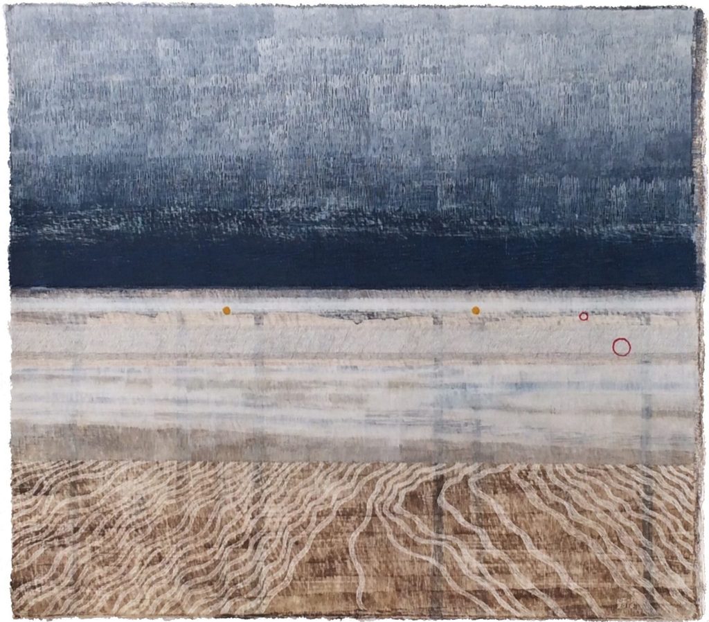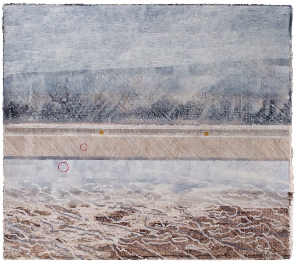 In the year of Covid 19 this painting takes on a poignant significance. I note that it was completed in 2019 and therefore could act as a prediction. However it is more likely to reference a conflict or conflicts in general where the outcome has not been good. The male figure digs the graves whilst a woman looks on. The soil is thin and sandy, orangey red in colour and the background bleak with leafless trees. The title hints at the circle of life returning the bodies to whence they came.