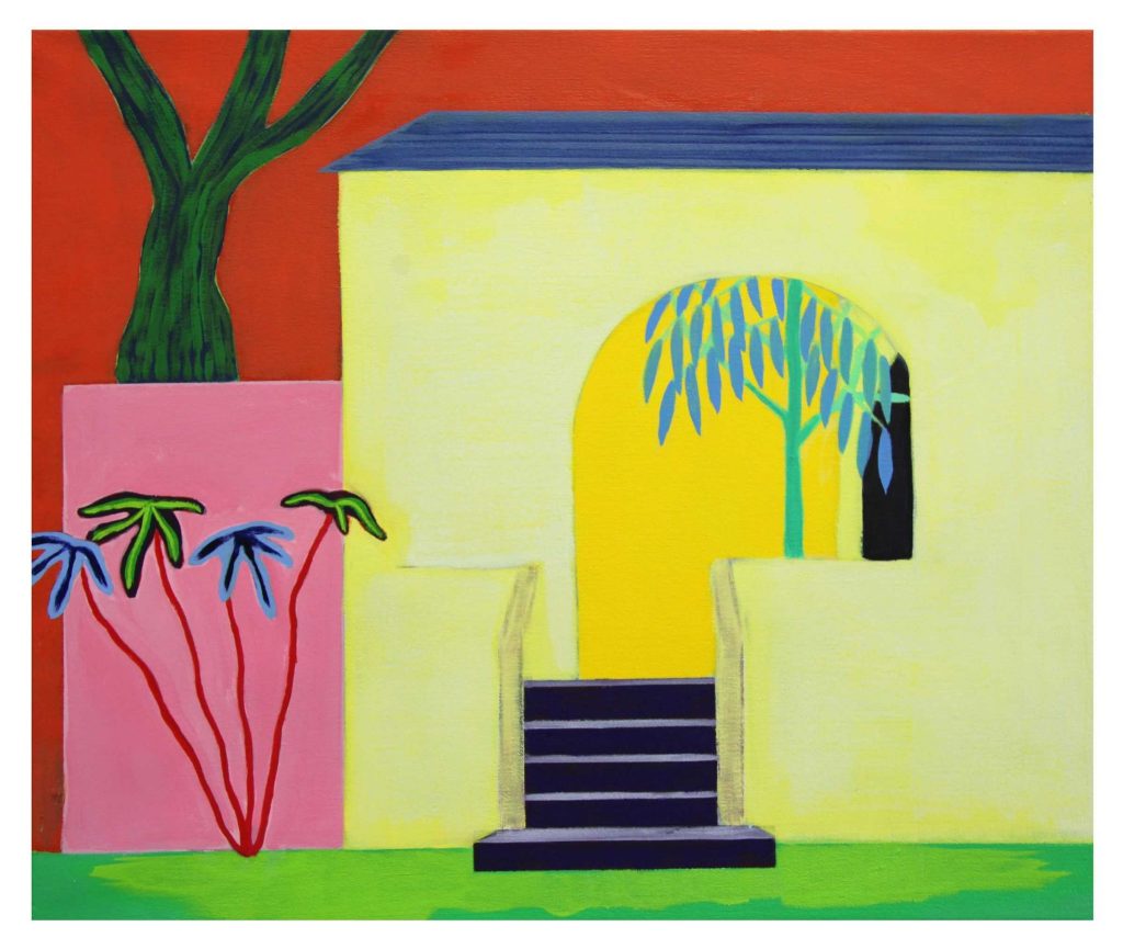 The influences of Henri Matisse run through this painting. The blocks of pastel colours, the suggestion of looking out of a room towards the view outside are an amalgamation of idea and parts of paintings by Matisse. Stephen Snoody has been honest with the viewer as to the influences which, I feel, enhances the experience of looking at this painting.