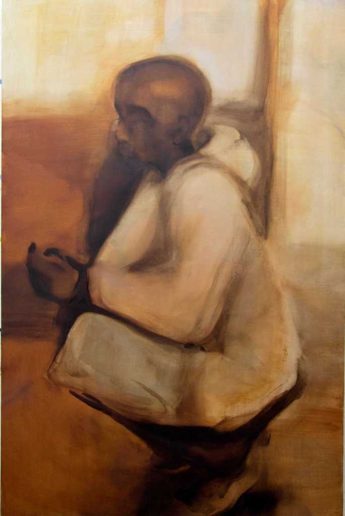 I find this painting hard to read. It is a figurative study that has an unsettling look as it hovers somewhere between dream and reality. Is it forming or dissolving?