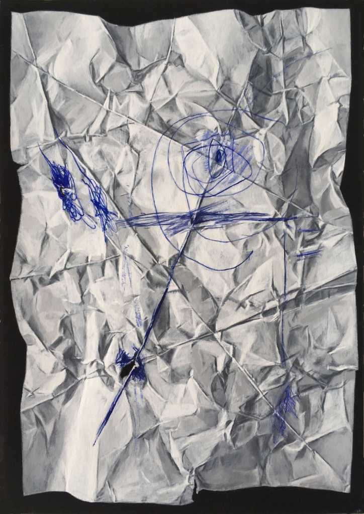 The title ‘A sculpture that will never get made’ indicates that the subject has form but this is partly negated by the ephemeral wisps of forms that surround it. Could it be that the sculpture can’t be made as it is in a transient state?