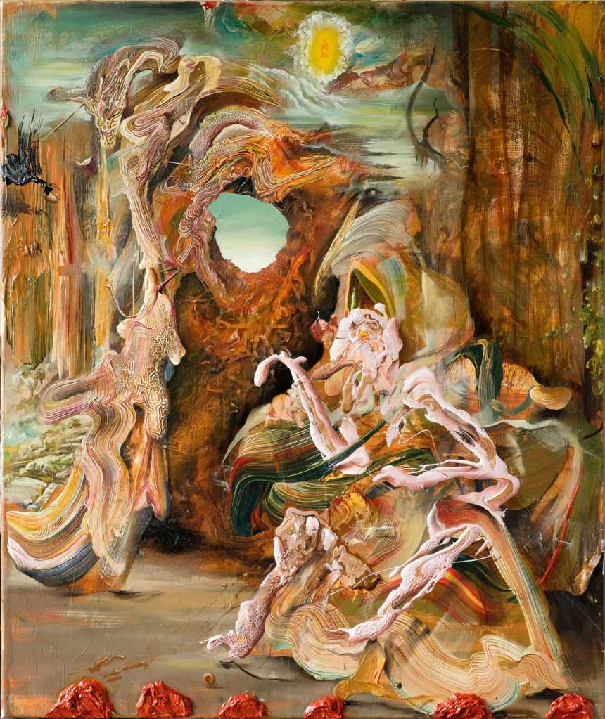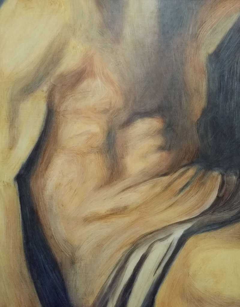 I find this painting hard to read. It is a figurative study that has an unsettling look as it hovers somewhere between dream and reality. Is it forming or dissolving?